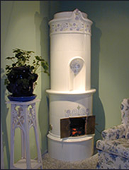 R Göteborg Empire-Ofen mit fein zisilierter Krone um 1840, Höhe ca. 200 cm Herkunft: Bohuslan, Schweden
